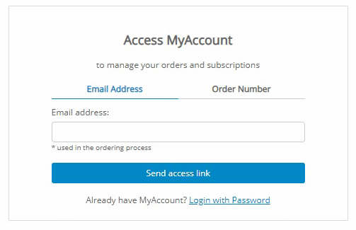 If it is your first time logging in at 2Checkout, enter the email address that you used to purchase your subscription and click the Send access link button.